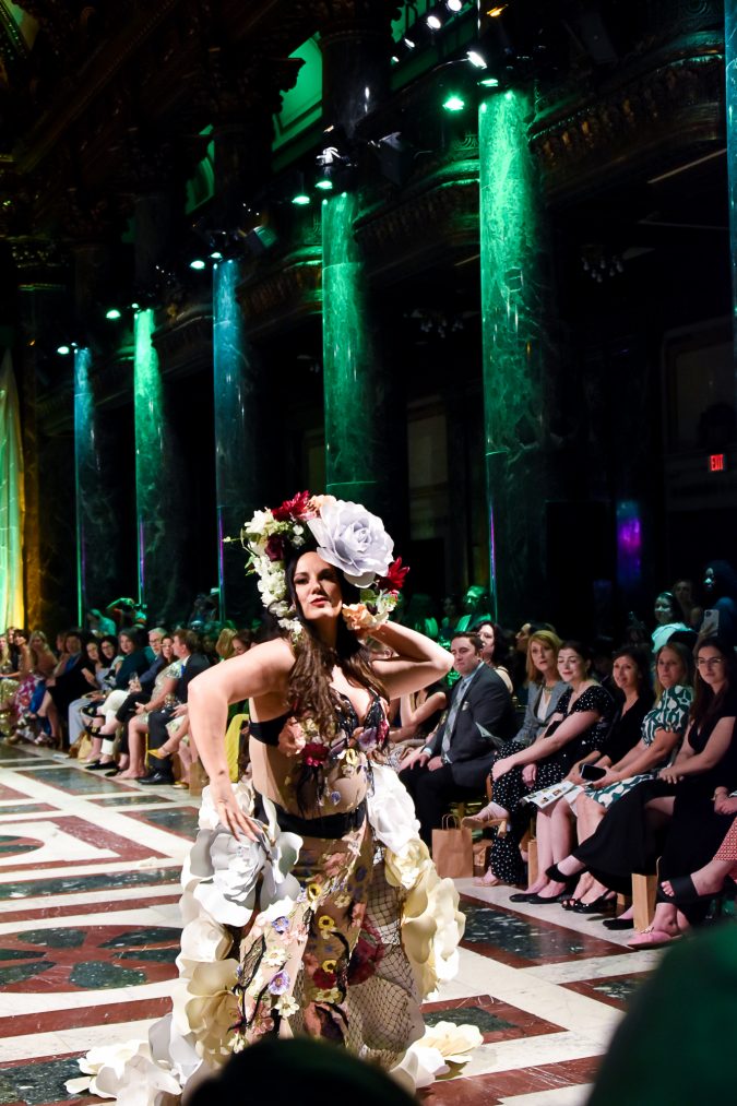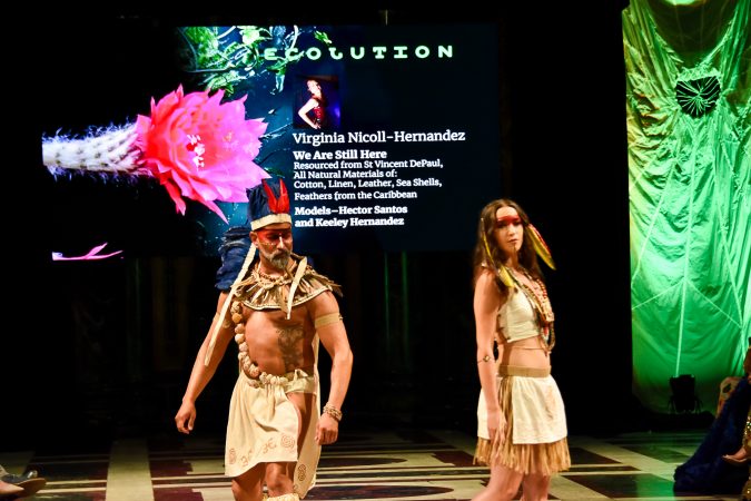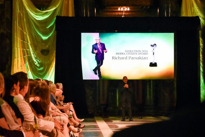 Before the show started, hosts Daisy Jade and Amanda Gorecki welcomed everyone and the third annual Model Citizen Award was presented to Richard Parsakian, former curator of the Ecolution Fashion Gala. “I really am so grateful for this organization,” Parsakian said. He is one of the founders of Ecolution along with Ronda Zegerelli and Emilio Cornacchione. Parsakian is most known for his fashion work, sustainability and LGBTQ representation.