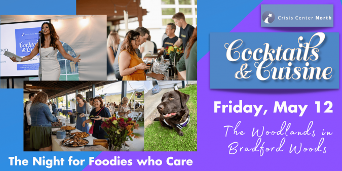 Get your tickets or make a gift here for Cocktails & Cuisine to Support Crisis Center North: